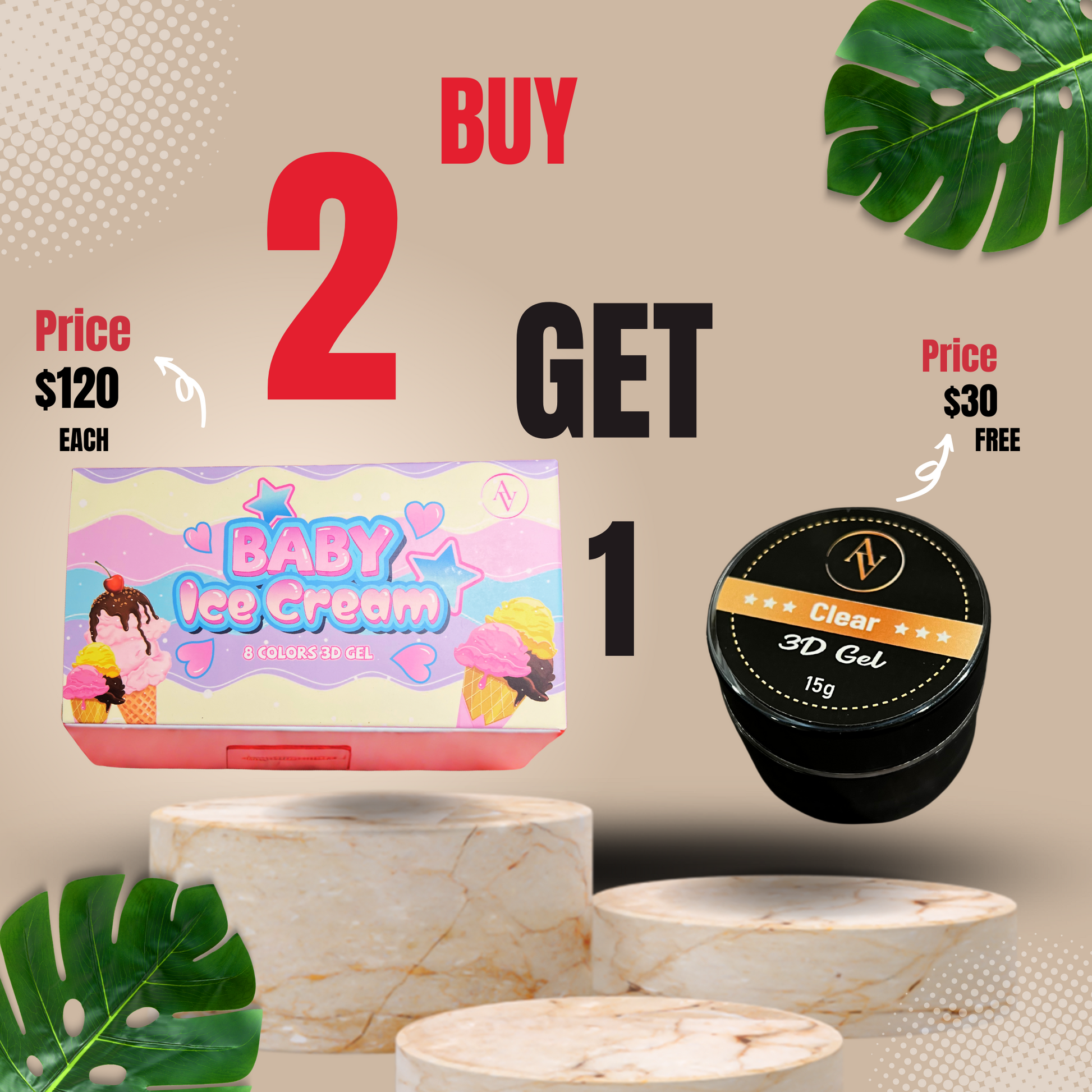 If You buy 2 Baby Ice Cream Sets, You Will GET 1 CLEAR 3D Gel (15g) FREE